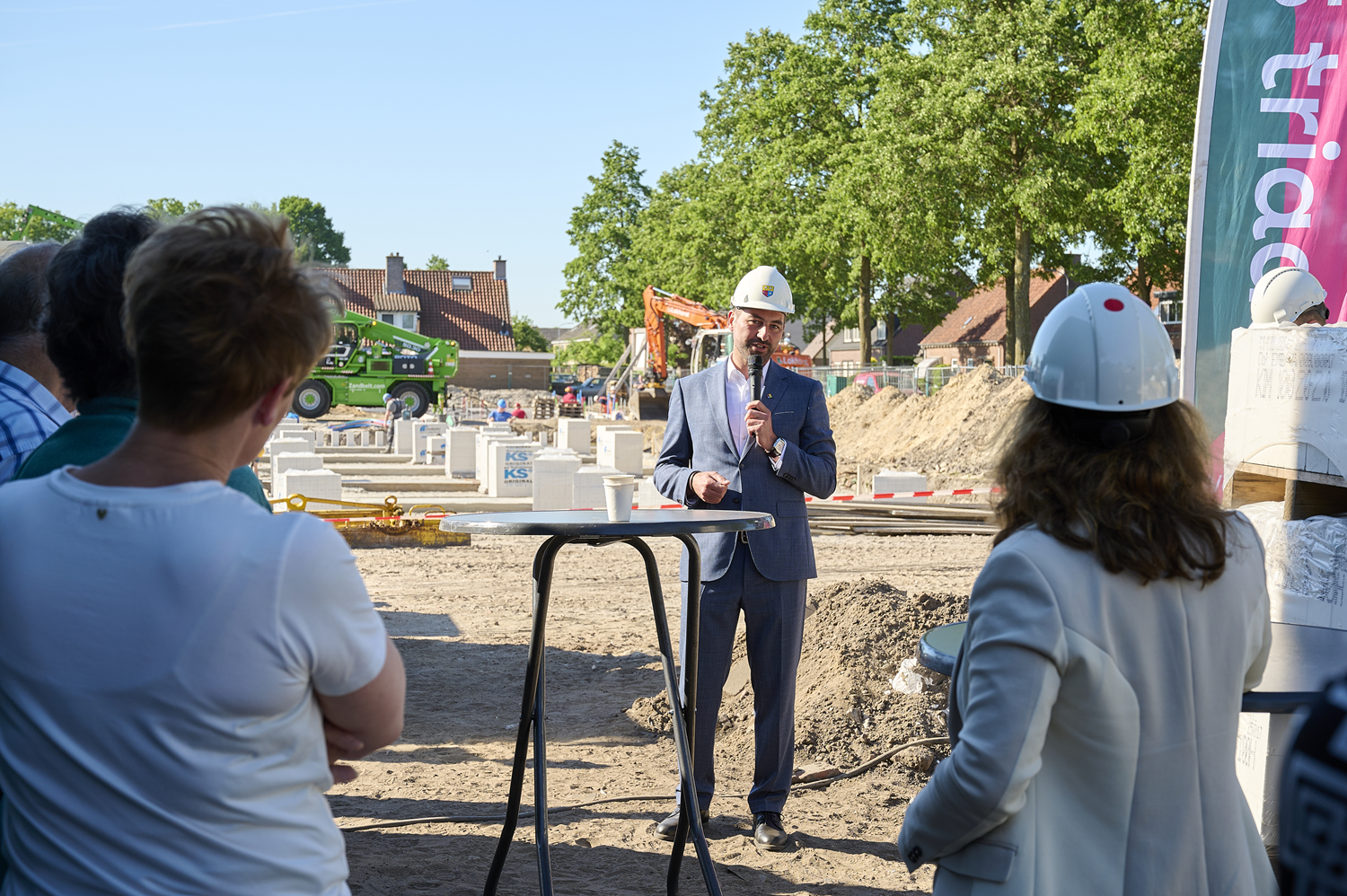 De contouren van de nieuwe woningen worden al zichtbaar. Op deze plek stonden voorheen tien huurwoningen. Nu komen er vijftien voor terug: drie eengezinswoningen, 6 starterswoningen en 6 seniorenwoningen. Hiermee kunnen we meerdere doelgroepen een nieuw thuis bieden.